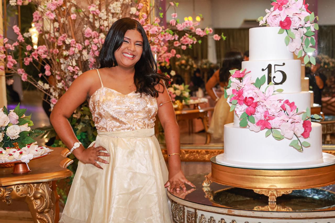 O evento, realizado no Palazzo Cristal, reuniu estrutura completa, decoração especial, buffet, doces finos, serviços de beleza e música, garantindo uma experiência inesquecível às jovens e suas famílias.