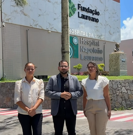 Presidente da Câmara de Lucena visita Hospital Napoleão Laureano para conhecer estrutura do tratamento contra o câncer, acompanhado das vereadoras Débora da Maria Rita e Renata Dornelas